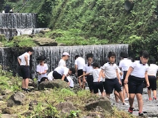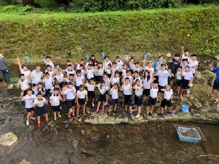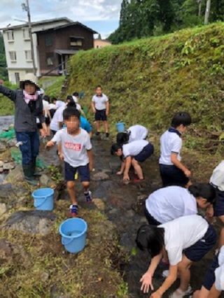 魚つかみと川遊びをしました。