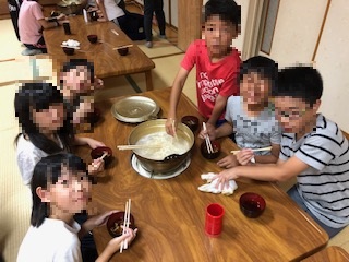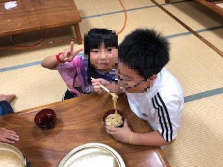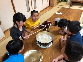 自分たちの作ったうどんを茹でて、食べました。みんな満足そうな顔ですね。美味しかったでしょうね。
