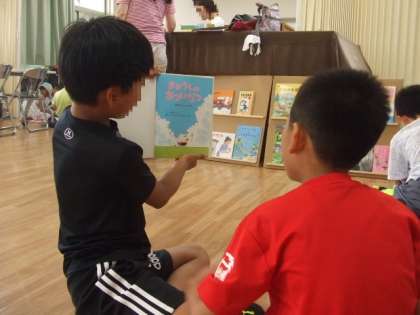 24日(水)の2日目も、たくさんの子どもたちが参加していました。昨日と同じように「しおり」を作ったり、友だちと読みあいっこしたりしていました。