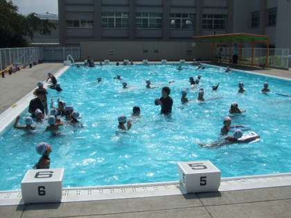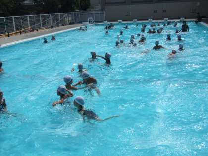 夏休みに入って、晴れの日が続いています。毎日たくさんの子どもたちが夏休みの水泳に参加していました。
