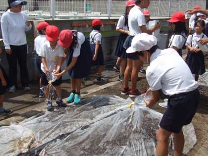 種を植えるとその上に不織布をかけました。これは、〇水をかけても種が流されない、〇鳥に種を取られない、〇保湿効果などの目的があります。最後にたっぷりと水をあげました。しばらくの間は、毎日の水やりがとても大切です。