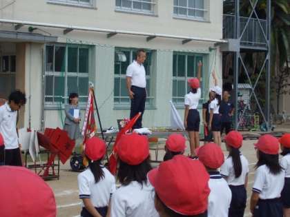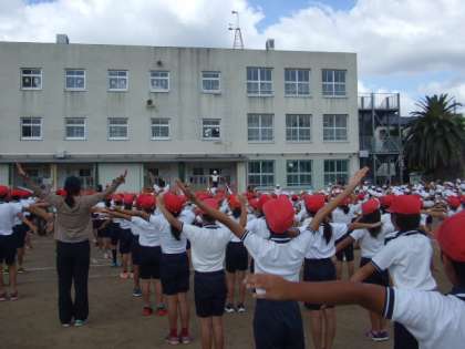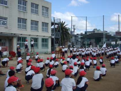 歌・応援団・ラジオ体操などの練習を行いました。また、応援団による「エールの交換」もありました。