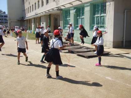 15分休憩にたくさんの子どもたちが運動場に出て、10月の種目に取り組みました。10月は、低学年(ボール・遊具)、中学年(なわとび)、高学年(大繩・一輪車・竹馬)に取り組みます。