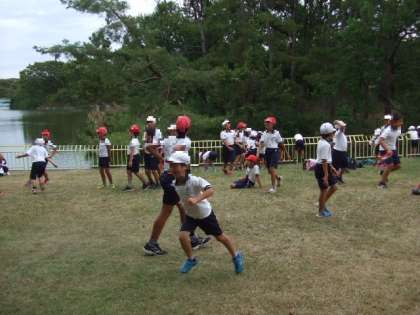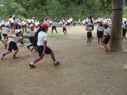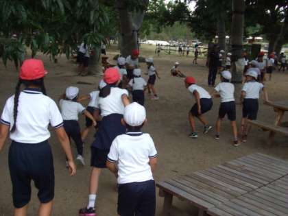 お昼御飯が終わると、自由時間がありました。ふれあい班で「おにごっこ」や「だるまさんがころんだ」など色々な活動をしていました。