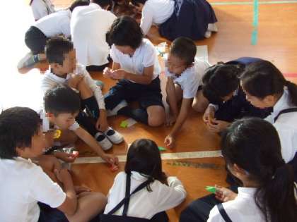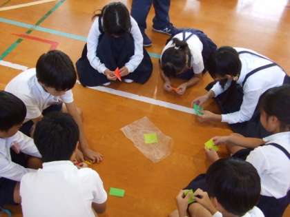 その後、班に分かれて6年生に教えてもらいながら一つ一つていねいに折っていました。