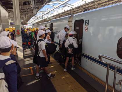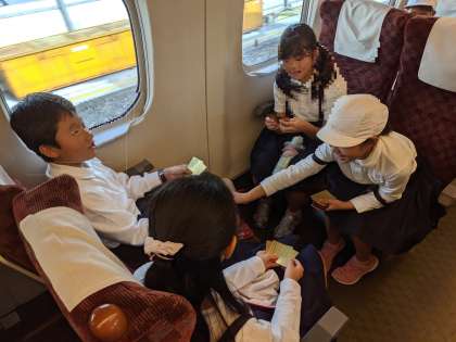 約90分の乗車時間ですが、しおりを見て予習したり、早くもお土産を考えたりしてる子どもいます。