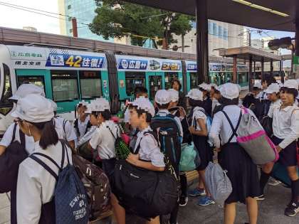 お好み焼き物語を出て、路面電車で原爆ドーム前に向かいます。