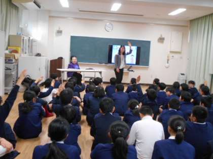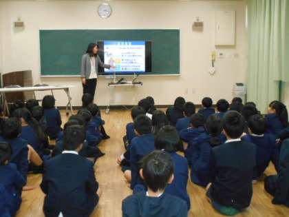 スマホ・携帯は大変便利である反面、個人情報が流出したり、なりすましの詐欺などにあったりする危険性もあることを学習しました。子どもたちは興味津々にお話を聞いていました。これからも気を付けていきたいですね。
