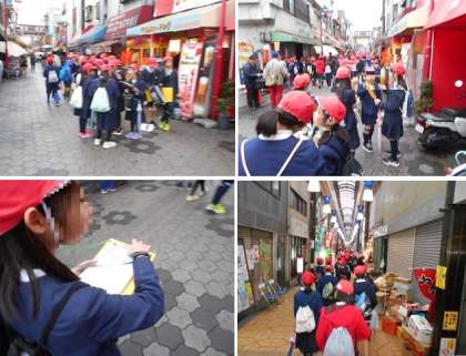 どのグループも仲良く、ルールを守って買い物をしていました。今年度も決められた金額内であればそこで食べても良いことにしたので、子どもたちは大満足のようでした。友だちと分け合いながら上手に買い物をしているグループもありました。この社会見学を通して、コリアタウンの人々の様子や文化にふれることができたのではないかと思います。