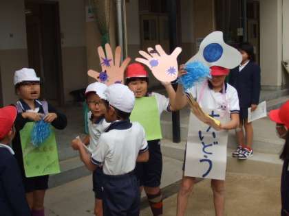 そして、忘れてはならないのが先週保健委員会から発表のあった「手洗い・うがい強調週間」。休み時間の終わりのチャイムが鳴ると、水道のところで保健委員会のみなさんが待ち構え、「遊んだあとは手を洗いましょう!」と呼びかけます。寒くなってきたので、風邪をひかないよう、手洗いうがいをしっかりしながらおもいっきり運動しましょう!