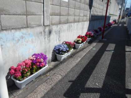 地域の方々が、学校の西側にきれいな花をプランターに植えて、並べていただきました。コロナウイルスで閑散とした町の人の心に潤いを持っていただけたらという願いだそうです。間隔を少しとって、ソーシャルディスタンスも考えてくださっています。もし、その近くを通られることがありましたら、見ていただけたらと思います。