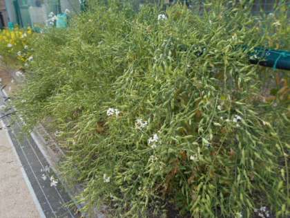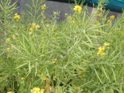 「アブラナ」は、5年生の理科で学習するために植えられています。学校休業のため、今年度は観察をすることができませんでしたが、来年度のために種を取っておきます。