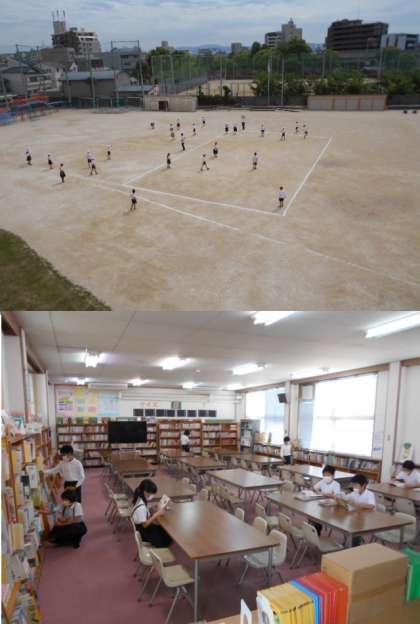 なかなか外で遊ぶ機会が少ないので、広い運動場で楽しく活動をすることができていました。教室や図書室もソーシャルディスタンスに気をつけながらすすめています。