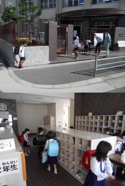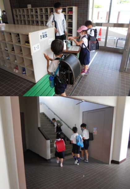 2回目の登校日なので、どの学年も手指消毒・自分の靴箱・教室への行き方など1回目よりはスムーズにできているようでした。