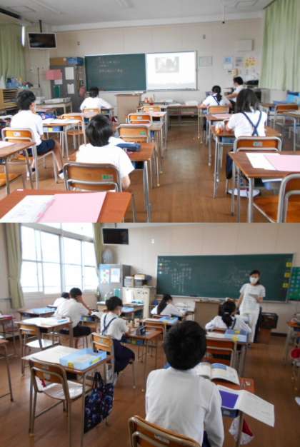 午前グループ3時間、午後グループ3時間の授業でスタートしました。来週からは、給食が始まります。少しずつ通常授業に戻っていきたいと思います。