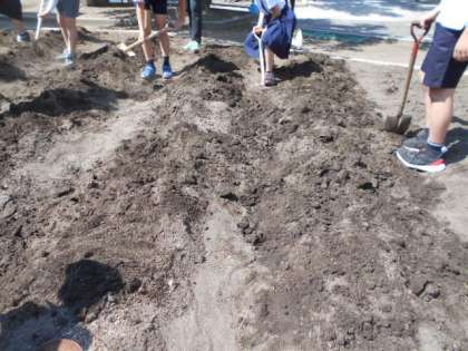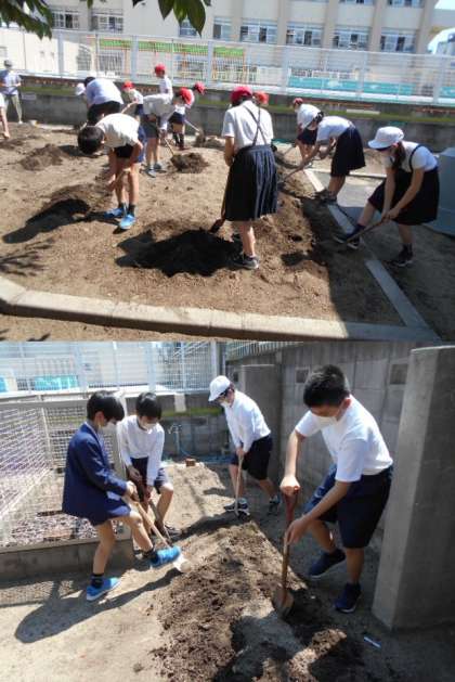 今年度は、どのような方法で活動するかは未定ですが、準備はしておかなくてはいけません。6年生が、その手始めとして農園を耕しました。みんなで力を合わせたので、フカフカの土になりました。