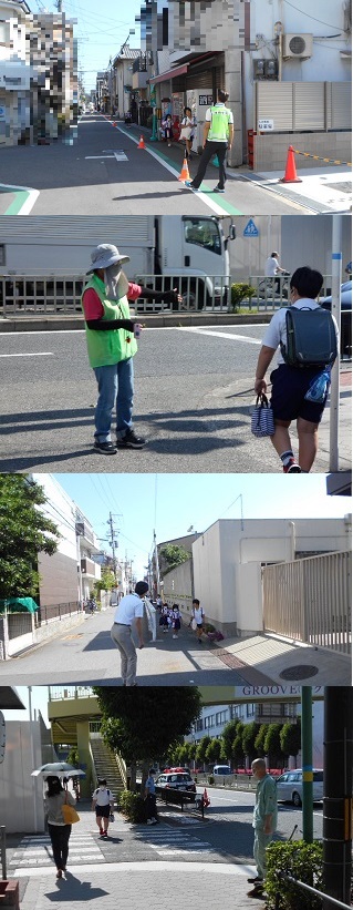 毎朝、見守り隊の方々や地域のボランティアの方々が通学路に立って子どもたちの登校を見守ってくださっています。一人一人に「おはようございます!」「いってらっしゃい!」と声をかけていただいています。中には10年以上も続けてくださっている方もおられます。今日は、阿倍野警察の方も巡回していただいていました。