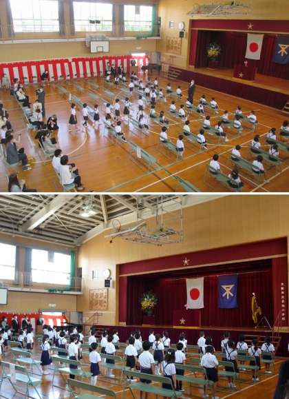 1年生は音楽に合わせて元気に入場し、自分の席にきちんと座ることができました。
