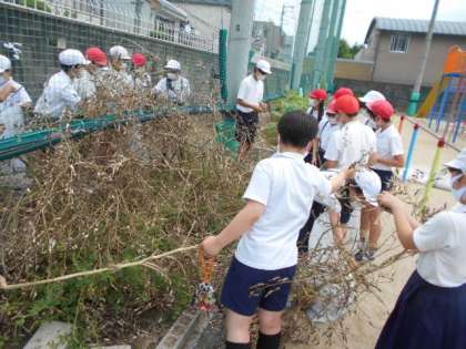梅雨の中休みに6年生が「田辺大根」の種を収穫しました。