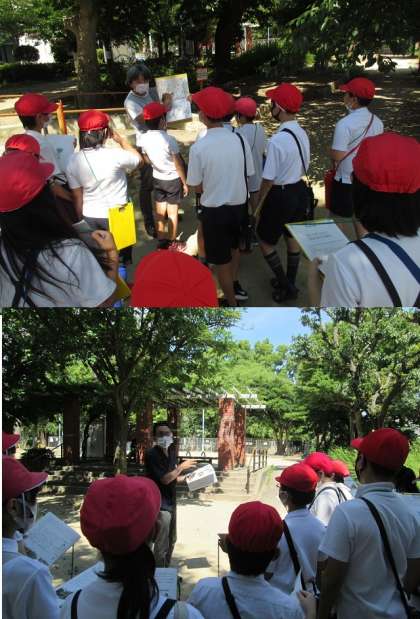 毎年6年生は、田辺大根サポーターの方々に来ていただいて、「田辺の町歩き」の学習をしています。例年は、5月ごろに行くのですが、今年は「臨時休業」があったので、この時期にしていただきました。