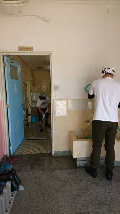 体育館では、清掃の後ワックスがけもしていただき、更衣室やトイレもとてもきれいにしてくださいました。1階のトイレや手洗い場も丁寧に清掃していただきました。ピロティや廊下も、掃き掃除、水拭き、マットの洗浄…と、皆さん汗だくになりながら仕上げてくださいました。本当にお疲れさまでした。