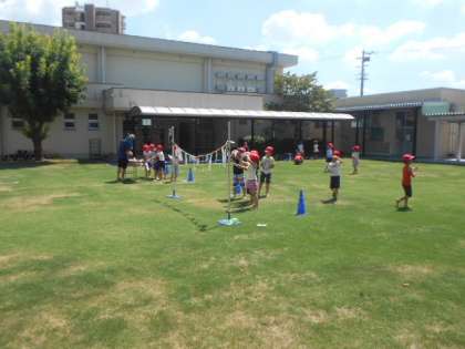 今日も朝から日光が強く暑かったので、1年生の子どもたちは思いっきり水遊びを楽しんでいました。