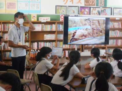 5時間目に、図書室で映像を見ながら「田辺大根の歴史」や1学期に実施した「田辺の町あるき」のふりかえりをしていただきました。