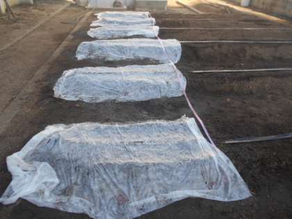 最後に種が水で流れたり、鳥に食べられたりしないように不織布をかけて、たっぷりと水をあげました。