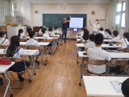 金曜日は、毎週C-NETの先生に来ていただいて英語の学習活動をします。保健関係の検診が終了したので、これからは多目的室で学習することが多いです。先生の質問に英語で答える場面がありましたが、さすが高学年で上手に答えることができていました。