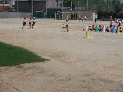 2年生は運動場で個人走の練習をしていました。1年生の時の直線コースと違ってトラックを走ります。コーナーも上手に走ることが出来ていました。