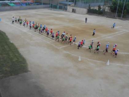 スポーツデイで6年生はリレーをします。走る距離が違うスウェーデンリレーで、それぞれバトンを渡す場所が変わるので最初は難しいようでした。しかし、さすが6年生でスピードにのった迫力ある練習でした。