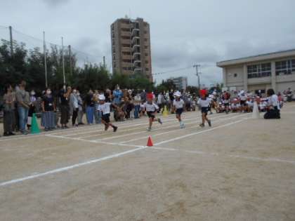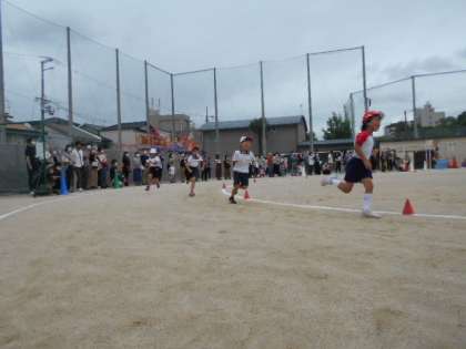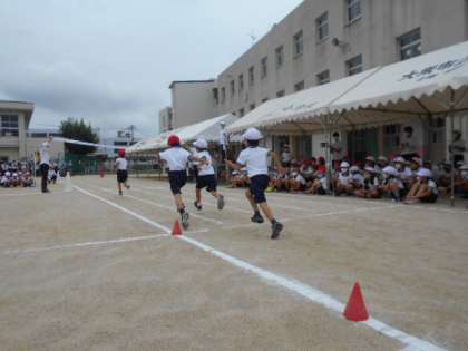 1年生の個人走です。小学生になって初めての大きな体育行事です。トラックのコーナーを上手に走っていました。