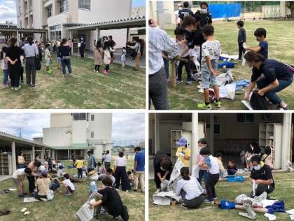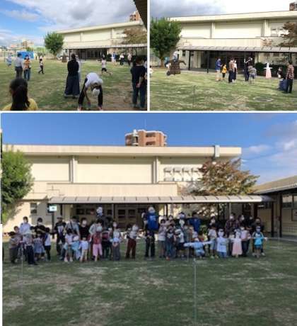 午後1時からは緑花部会主催 PTA共催の「案山子づくり」のイベントを実施しました。今回もたくさんの方々にご参加いただきました。案山子づくりも今年で3回目、手慣れた方もずいぶんいらっしゃいます。古着を持ち寄って、思い思いに案山子をつくります。子どもたちも大人に負けず大活躍です。最後には皆さんの作品の鑑賞会です。アイデアいっぱいの個性的で楽しい作品ばかりでした。3週間の芝生の養生期間の間、この案山子たちが芝生を守ってくれます。学校に来られた際はどうぞご鑑賞ください。