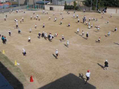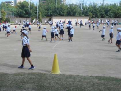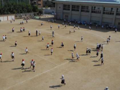 ずいぶんと過ごしやすい気候になってきました。今日は、晴れのお天気で、さわやかな風が吹いていました。昼休みにはたくさんの子どもたちが運動場で活動していました。