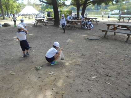 午後からは、学年で活動します。1年生は、どんぐりを探して集めていました。
