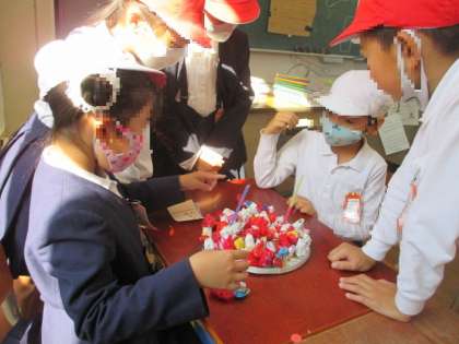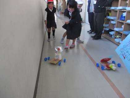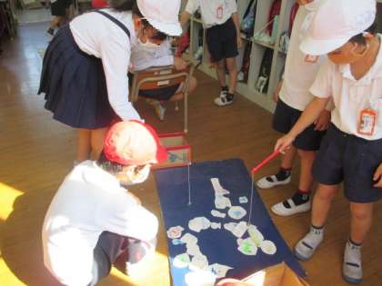 2年生が生活科で「おもちゃランド」をしました。クラスで6つずつゲームコーナーを考え、それぞれが個性的なおもちゃや道具を作っていました。前半・後半に分かれて店を回る人とお店番の人が交代でしました。