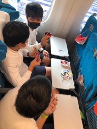 新幹線に乗り込んで、自分たちの時間を楽しんでいます。