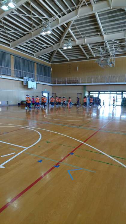 検温、消毒、体育館の扉や窓の開放…といった感染対策をしながら、元気いっぱいの子どもたちと練習を行いました。