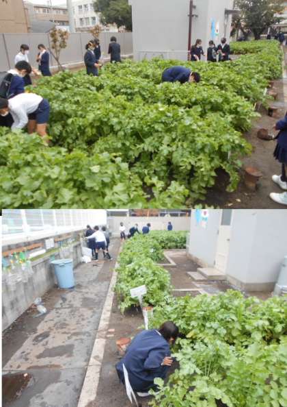 6年生は当番でなくても、自分の班と種取り用の田辺大根のようすを毎日見に来ています。