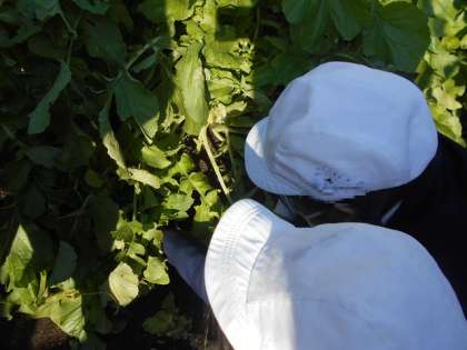今年もアブラムシは、今のところほとんど発生していませんが、白さび病が少し出始めています。みんな葉の裏までしっかりと見ています。