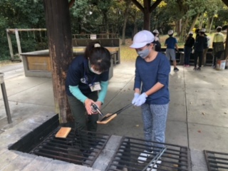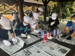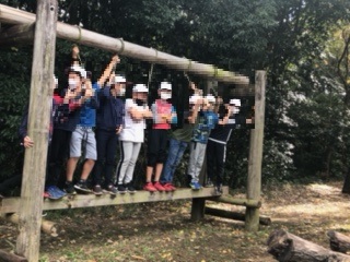 焼いた板を今度は磨きました。終わって板を乾燥している間にアスレチックであそんでいます。