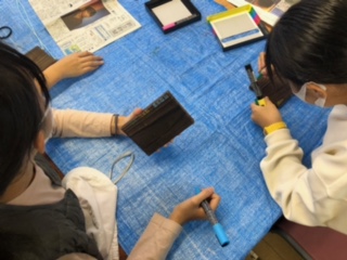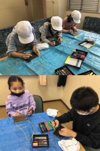 午前中に自分で焼いて磨いた焼き板に、絵を描きます。それぞれの個性が輝いています。