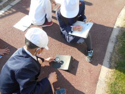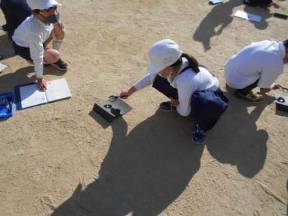 最初はなかなかうまくいきませんでしたが、距離や角度を色々変えて光を集める点を小さくしていきました。「わあ!煙が出てきた。」「穴が開いた!」など驚きの声があちらこちらで聞かれました。