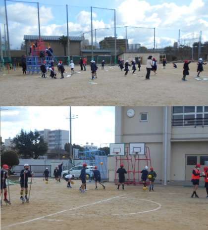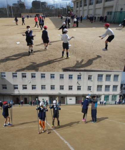 寒い日でしたが、今日も15分休憩にたくさんの子どもたちが運動場に出てナガリンピックに取り組んでいます。どの種目もだんだんと上手になってきている感じがします。「次、何の技やったかな。」「駆け足跳びや。」などナガリンピックカードを見ながら、一輪車・竹馬・なわとび・ボール運動・遊具に挑戦していました。
