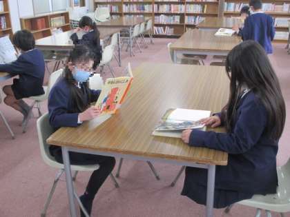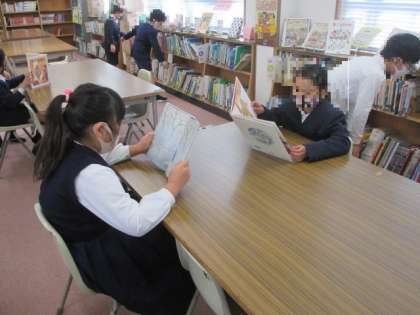 いま国語科で学習している「かさこじぞう」のまとめの活動として、昔ばなしを読む活動をしました。図書室で昔ばなしを読んだり、図書の時間に1冊昔ばなしを借りたりしました。