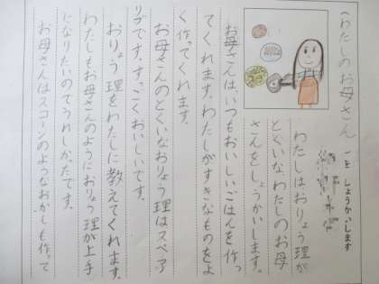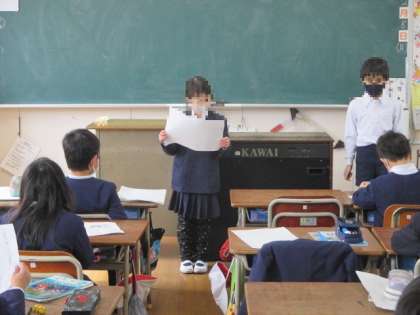 国語科の「この人をしょうかいします」では、自分の周りにいる何かをするのが得意な人や何かに詳しい人をしょうかいしました。子どもたちはお家の人や習い事の先生、コーチなどのことを思い浮かべながら詳しく書いていました。