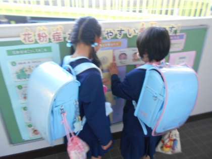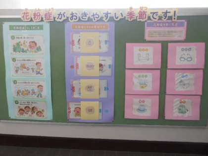 保健室前の掲示が変わりました。そろそろ花粉が飛び始めているようです。花粉症が気になる人は、掲示をよく見て対策を考えていきましょう。もちろん新型コロナウィルスなどの感染症にも気をつけていかなければいけませんね。