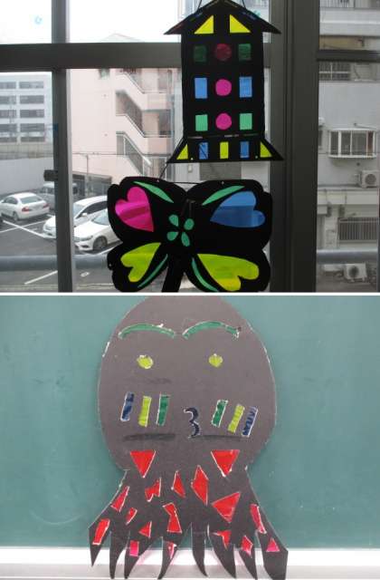 カッターナイフで切った後はカラーシートをつけて完成です!!