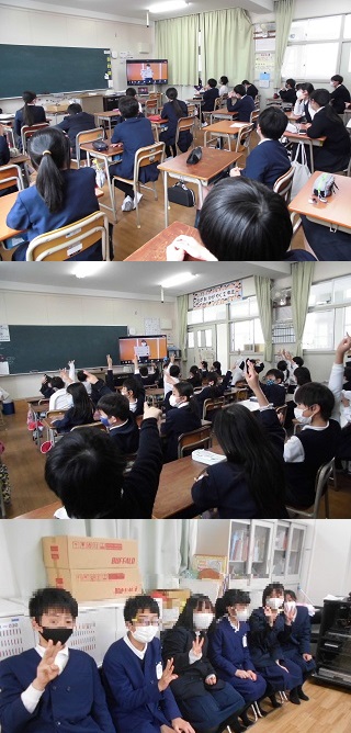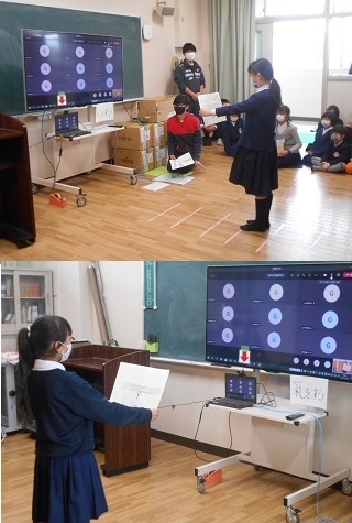 クイズタイムがありました。6年生が長池小学校で過ごした6年間から出題されました。各教室では楽しく参加できていたようです。多目的室に来ていた6年生は、声が出せないので指で番号を出して参加していました。