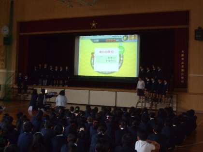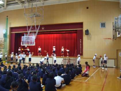 パソコンクラブは、パソコンを使ってできる楽しい活動を映像で紹介していました。ボール運動クラブは、狭いスペースを有効に使って、いろいろなボール運動を実演しました。